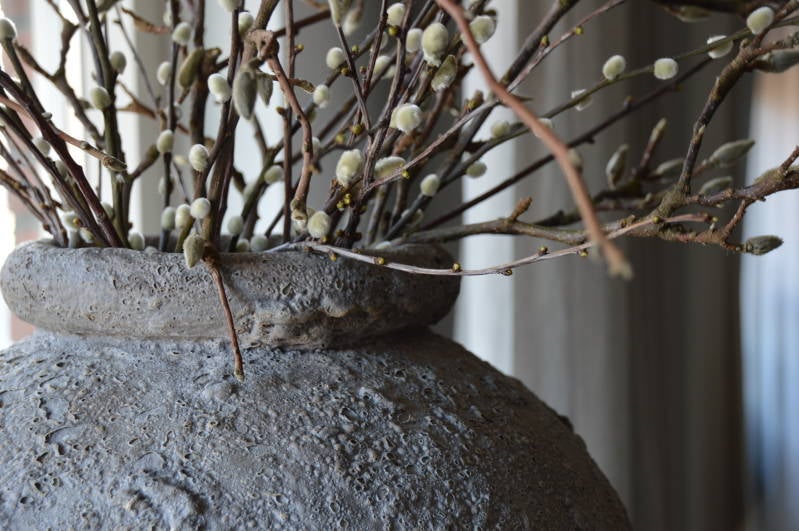 De STOERE vaas op de houten zuil paste perfect in het geheel !