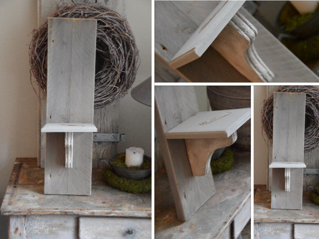 Oude planken werden bewerkt en mooie wandconsoles van gemaakt