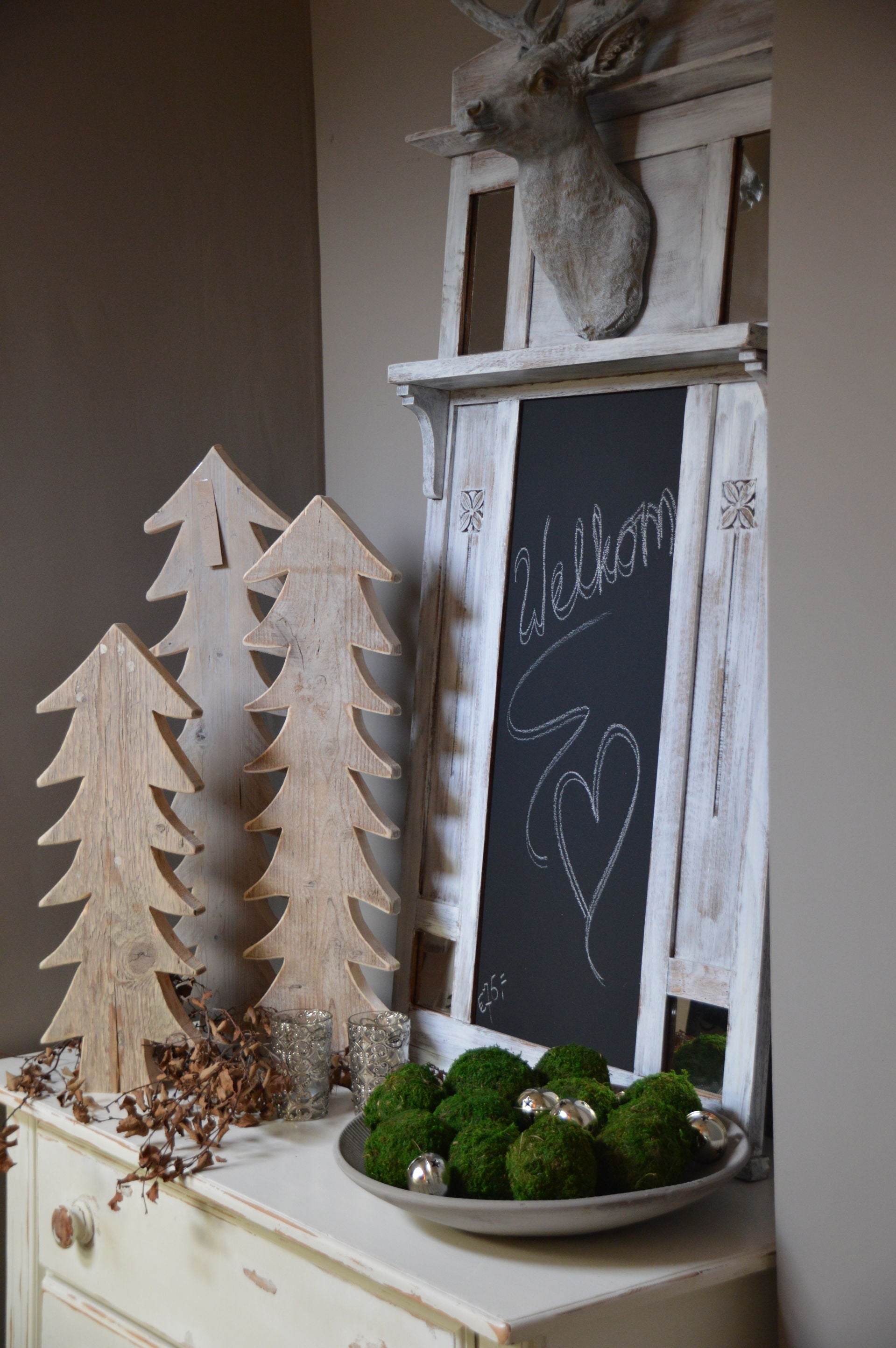 kerstboompjes van oude louvreluiken die uit elkaar lagen.....