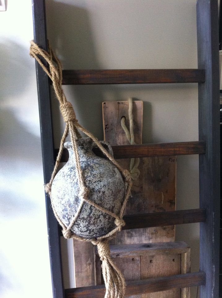 HANDMADE kruikje in stoer net, leuk voor aan deur, ladder, haak of in stoere trog