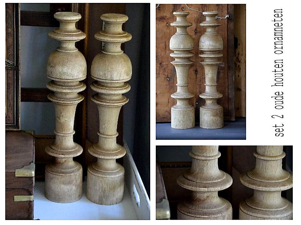 Set van 2 UNIEKE ornamenten van hout H 48 cm