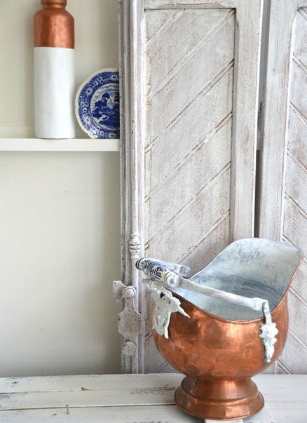 Ik deze oude ketel metdelfsblauwe porseleinen handvat-knop zag staan...